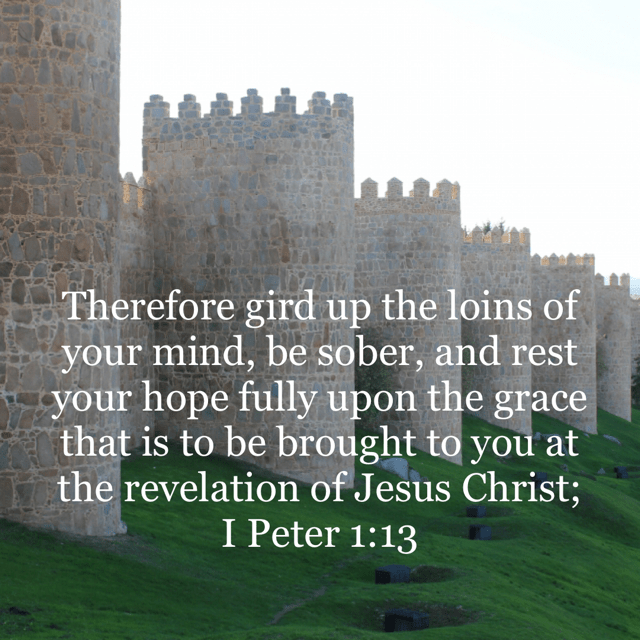 Therefore, gird up the loins of your mind, be sober and rest your hope fully upon the grace that is to be brought to you at the revelation of Jesus Christ, as obedient children, not conforming yourselves to the former lusts, as in your ignorance; but as He could called you is holy, you also be holy in your conduct.