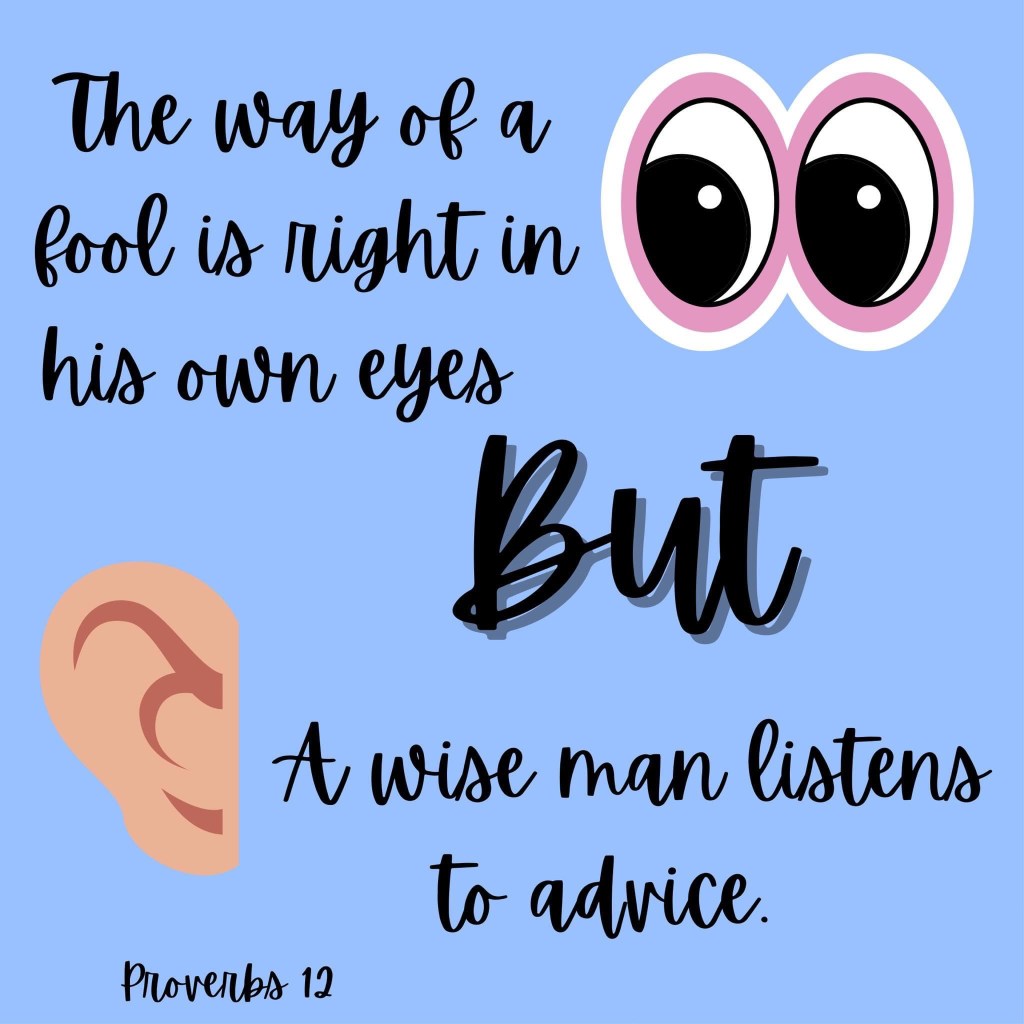 Solomon teaches us that this approach to life is the way of a fool. Only a fool thinks his way is right and avoids or doesn’t listen to those who would provide him sounder or even different advice. On the flip side, Solomon reminds us that there is wisdom in listening to advice.