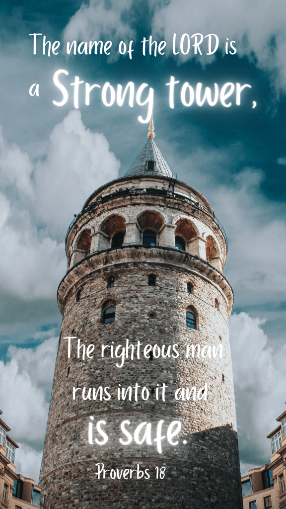 So, when the storms of life rage and you feel like your boat is sinking. Or, when your enemies or the wicked surround you and tempt you to join or mock you and oppress you. Don’t turn to anything or anyone this world has to offer. Those solutions don’t last and won’t protect you in the long term. Instead, run to God. He will open the doors to His tower and give you the peace and security you desperately crave.