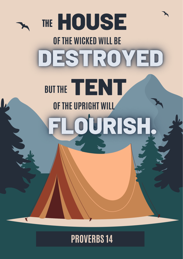 Now, think about the differences between houses and tents when you consider Solomon’s proverb. “The house of the wicked will be destroyed, but the tent of the upright will flourish.” It really stood out to be these morning. What is Solomon really driving at here?