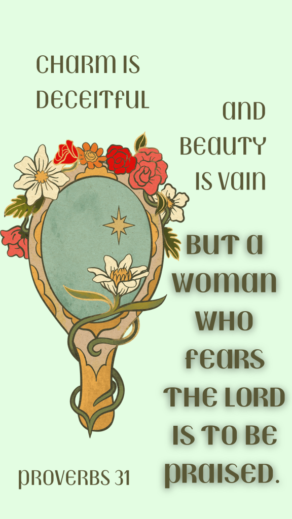 Society (and the internal voice in women’s head) pushes us to focus on the outward appearance and the outward social standing we achieve. We want to be beauty and we want to be charming and well liked. But Solomon tells us those things are not going to last. If we want to truly be praised, we must focus on our spiritual beauty.