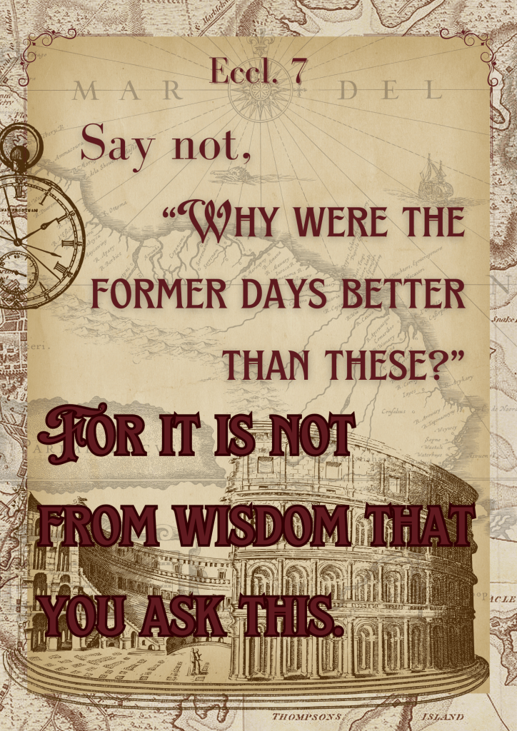 Solomon teaches us it is not wise to even ask the question or make the statement, “why were former days better than these!?” He tell us that question, that life approach, that attitude – well – it is not rooted in wisdom. In other words, it is not a question the wise ask to dwell on in their minds.