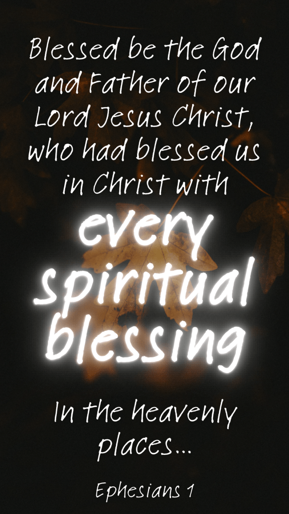 Because of God and His son Jesus – we have access to all of God’s spiritual blessings which are infinitely more important and infinitely more necessary than our physical blessings! So, praise be to God for His generosity (a blessing we will explore later)!! He has given us EVERY SPIRITUAL BLESSING!