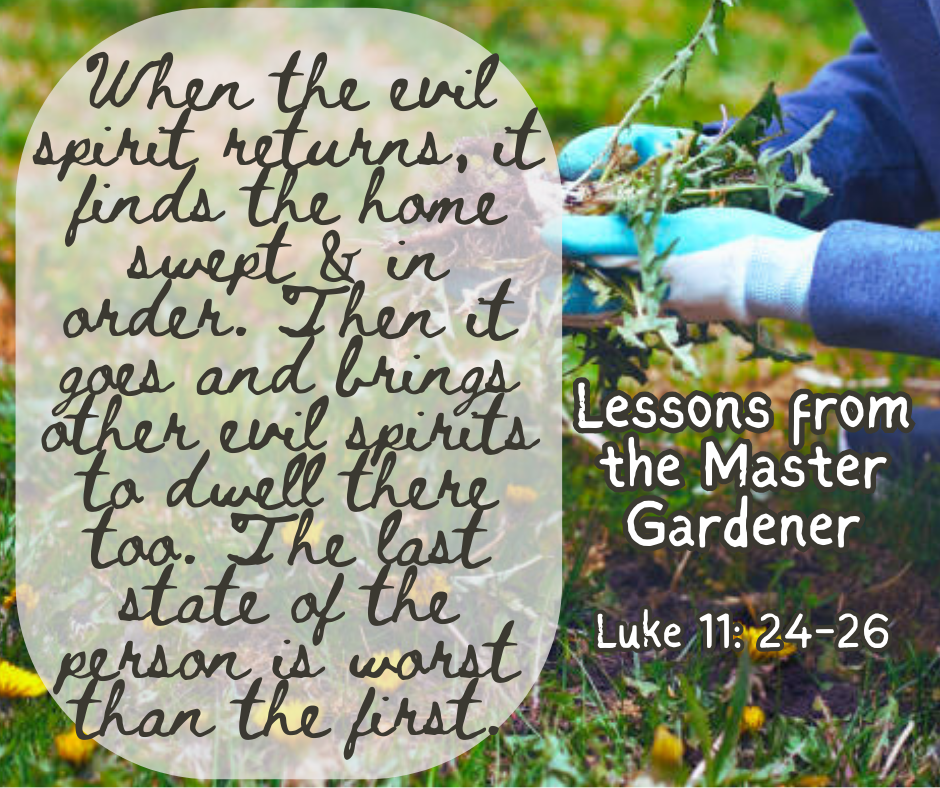 It isn’t enough just to remove sinful activities from our lives, we must replace them with godly ones otherwise they’ll come back with a vengeance. And that state is worst than the first. #lessonsfromthemastergardener