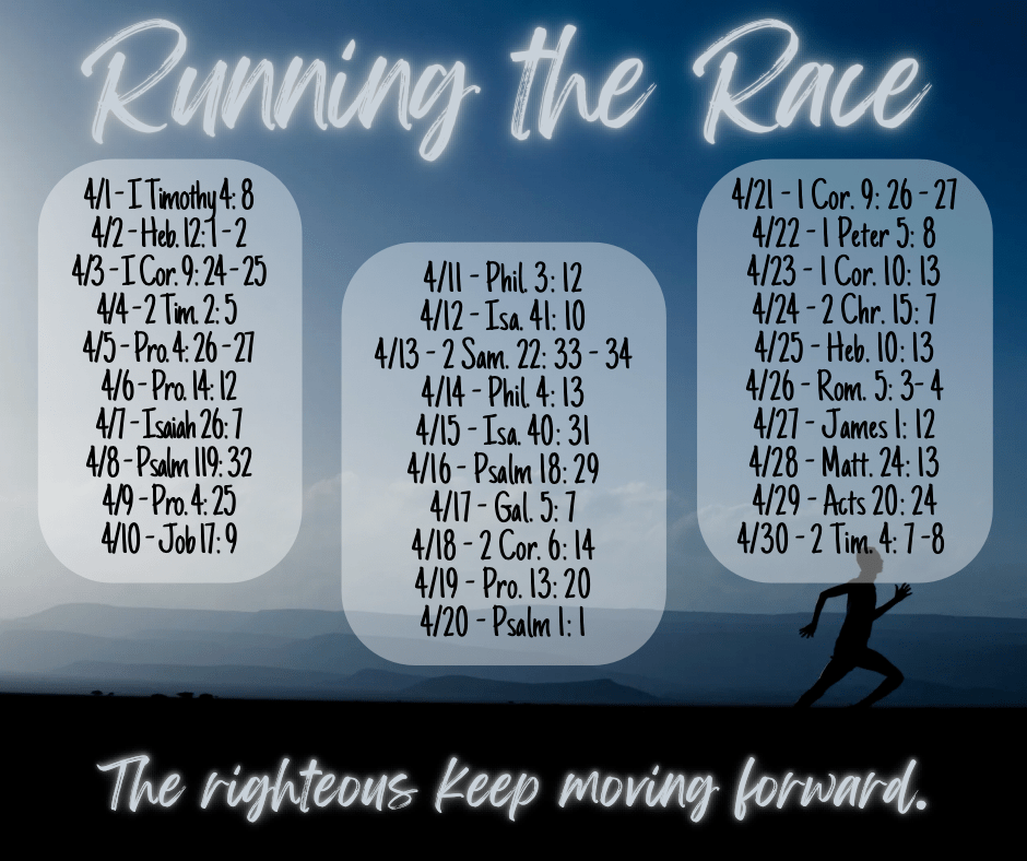 Our Scripture reading guide for April is now available! We will be exploring the theme of Running the Race! So, put on your shoes and strengthen your mind – we are about to enter the most important race you’ll ever run! #RunningTheRace