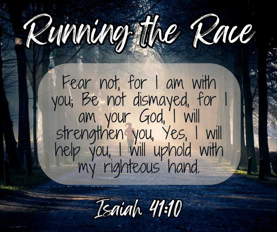 You aren’t running your spiritual race alone. Open your eyes – God is there right beside you. #runningtherace