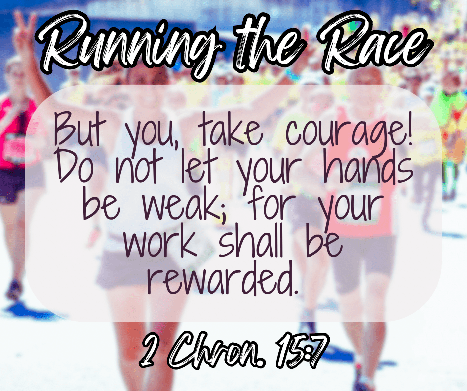 During those times remember what Azariah told Asa! Take courage! Keep going! Don’t become weak! For all your hard work in this life shall be rewarded in the next. Push through the challenges of this life so you can receive your reward from God in the next! #runningtherace