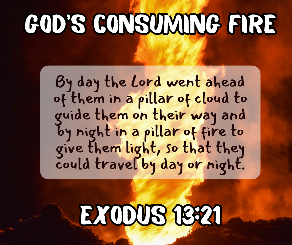 Just like the Israelites, God’s fire guides us and protects us through the dark times of our lives. We are never alone in the night. God is always with us. #GodsConsumingFire