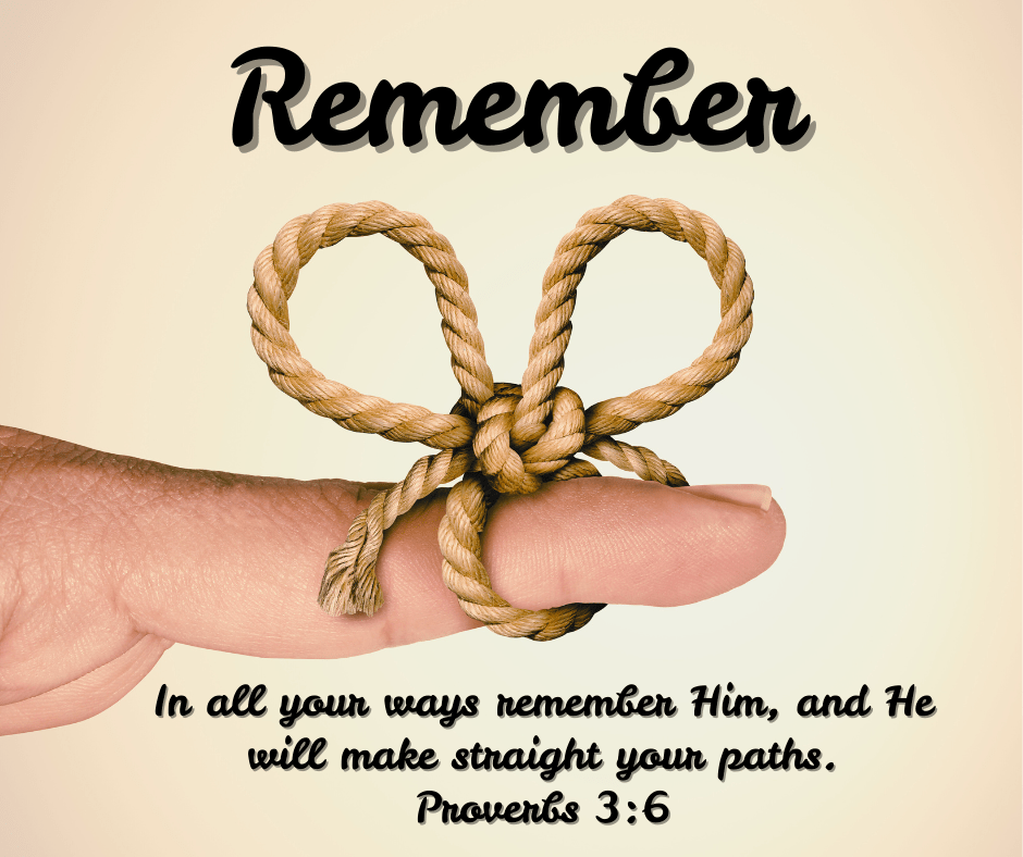 We remember God in everything we do. We should think back on all He has done and is doing for us And keep in the front of our minds all His instructions and commandments. Why? Because it we do – God will make sure to keep our path straight. He will make sure we don’t take a wrong turn and don’t get lost along the way. And when we do, He’ll be there telling us to turn around.