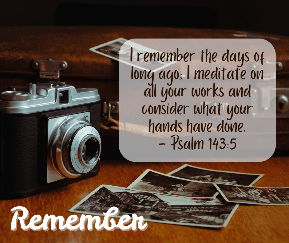 But there is one memory from long ago that doesn’t go fuzzy. It is the memory of all that God has done for us as humanity and for us individually. David writes: I remember the days of old; I meditate on all that you have done. I ponder the work of your hands (Psalm 143:5).