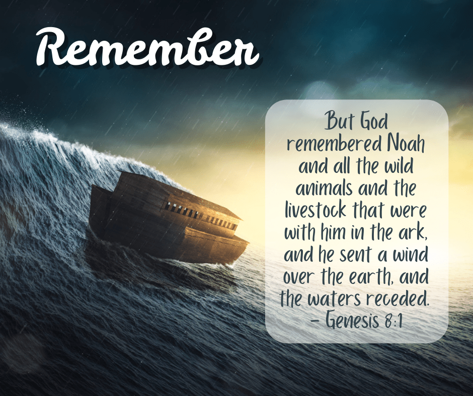 God did not leave Noah to float aimlessly across the earth forever. He remembered Noah. God remembered Noah’s righteousness and saved him by receding the waters.