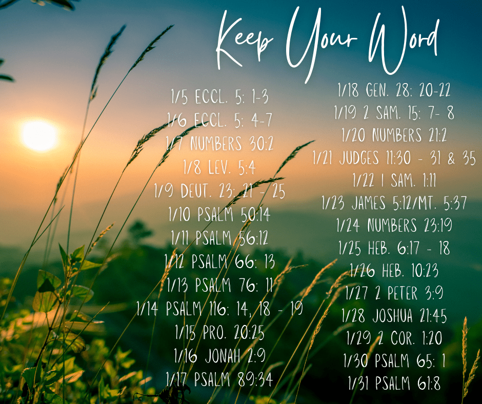 This makes it the perfect time to pause and reflect on the promises you’ve made to God and renew your commitment to keeping them. Throughout this month, we will focus on the importance of honoring our word, especially the promises made to Him, and take time to think and meditate on staying faithful to those commitments.