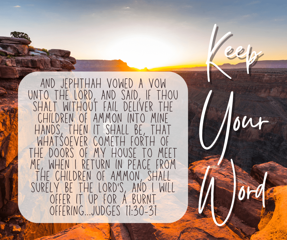Jephthah offers us a very serious lesson: Be careful what you vow to God, as He will expect you to fulfill it. #KeepYourWord
