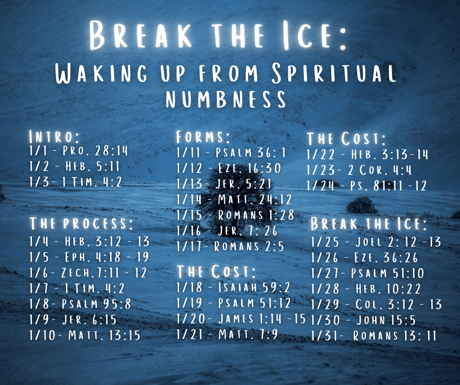 2025 has come to a close, and what a busy year it has been! I’m excited to be back and ready to dive in. Since January is one of the coldest months, we’re exploring the theme of spiritual numbness. ❄️ Below is our reading list—let’s break free from the ice and awaken our hearts! You can download the reading list @adonaisappeal! #BreakTheIce #SpiritualNumbness ❄️
